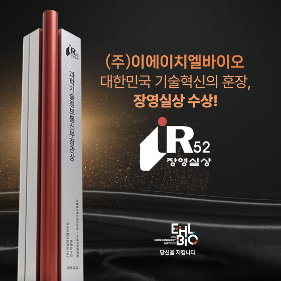 줄기세포 전문기업 EHLBIO가 8월 26일 IR52 장영실상(기술혁신)을 수상했습니다.이번 수상은 당사가 개발 중인...