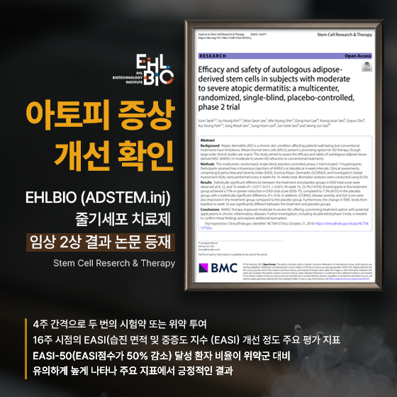 줄기세포·재생의학 전문기업 EHLBIO의 아토피 피부염 줄기세포 치료제 ‘에이디스템주(ADSTEM Inj.)’ 임상...