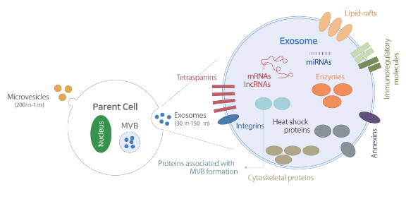 Exosomes are a nano-size extracellular vesicle secreted by all kind of cells to exchange intercellular communication. It contains diverse kinds of physiologically active substance. In particular, the exosome of stem cell is known as a key material with propagating capabilities, including differentiation and regeneration. Thus, it can be applied for treatment of diverse diseases, including regeneration of skin.