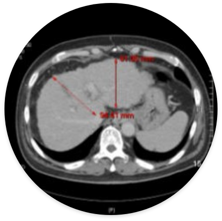 肝硬変(59歳, 男性)-施術後, 肝細胞が再生され, 肝臓が大きくなり, 肝組織が柔らかくなった