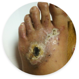 糖尿病の合併症の一つの足潰瘍は難治性疾患で、敗血症などの合併症を引き起こす。